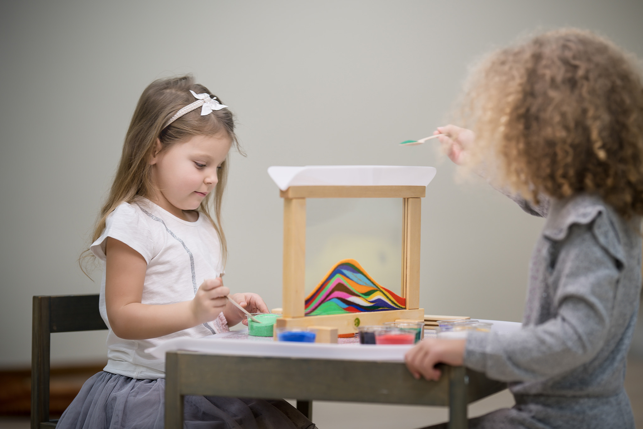 Fascinujúci a jedinečný obraz dokážu detičky vytvoriť prisypávaním piesku, farebnej kriedy a iných sypkých výrobkov. Na plnenie budú tiež ideálne malé cestoviny, soľ a všetko, čo sa nachádza doma alebo vo voľnej prírode bude perfektné pri kreatívnej tvorbe. Pre originálny výtvor a pokročilejšie štádium sa odporúča použiť pohánku, mak, krupicu, ryžu alebo šošovicu.