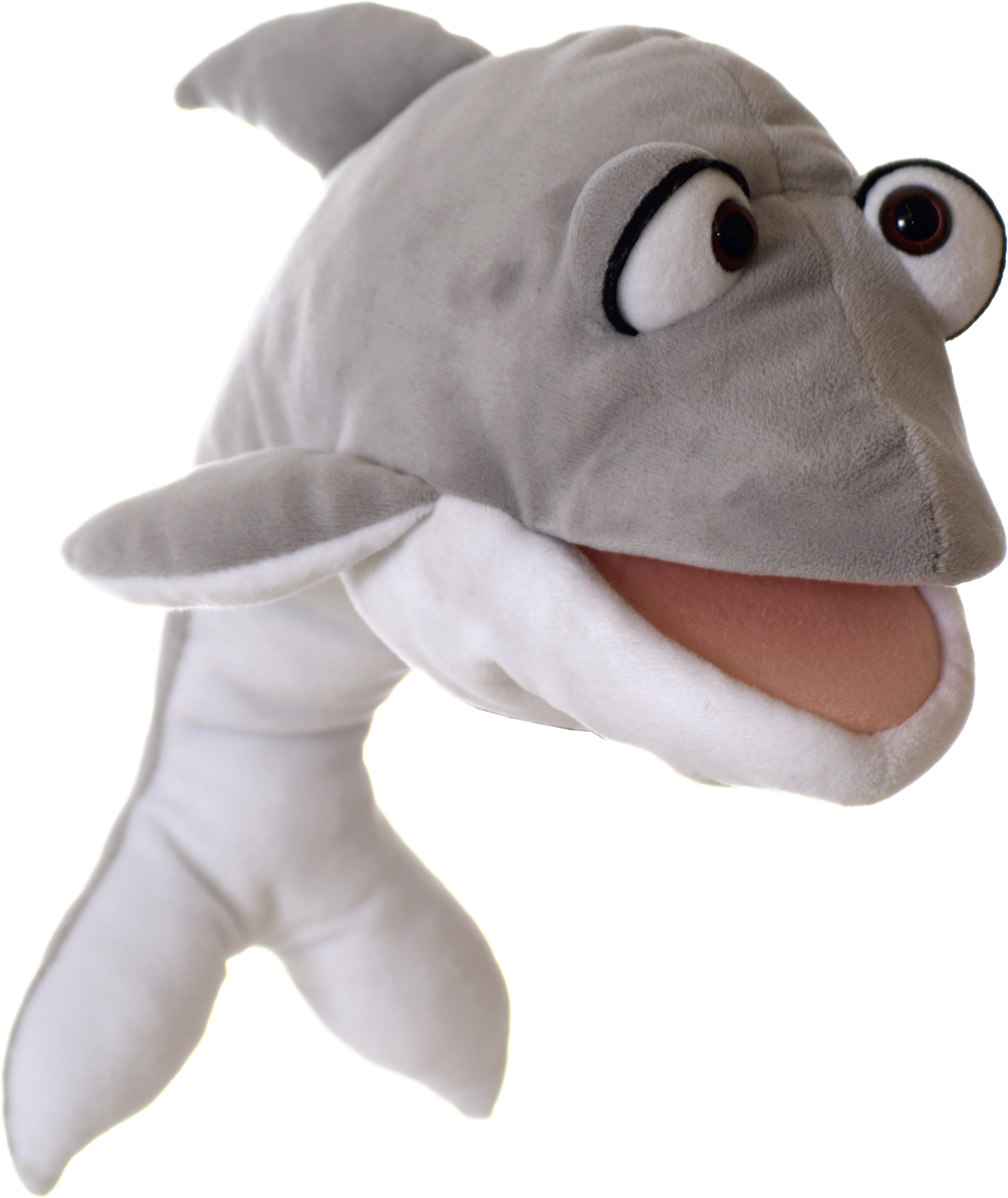 Priateľská maňuška delfína s pohyblivými ústami a hlavou.