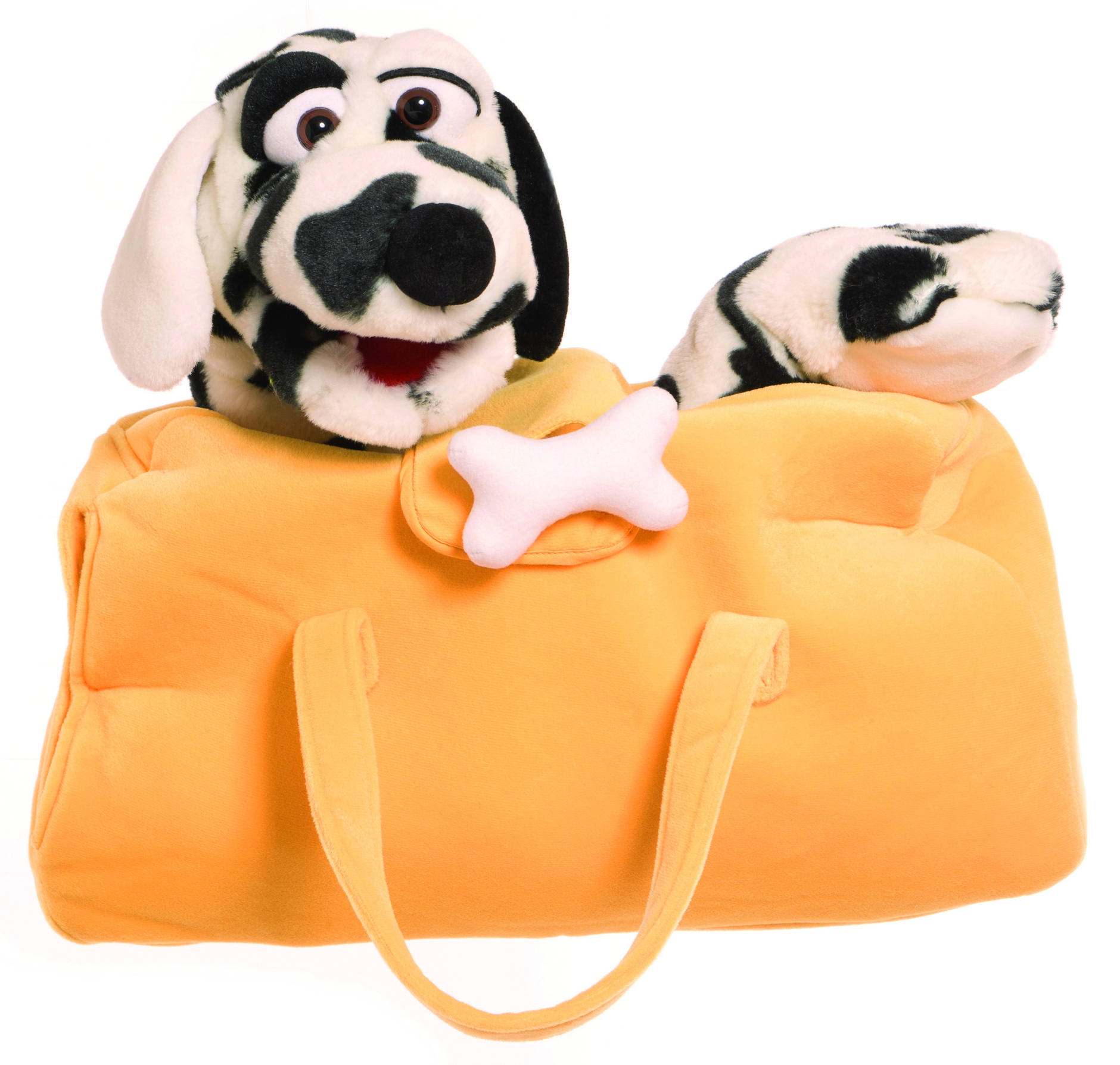 Maňuška psíka v taške s pohyblivými ústami a hlavou.