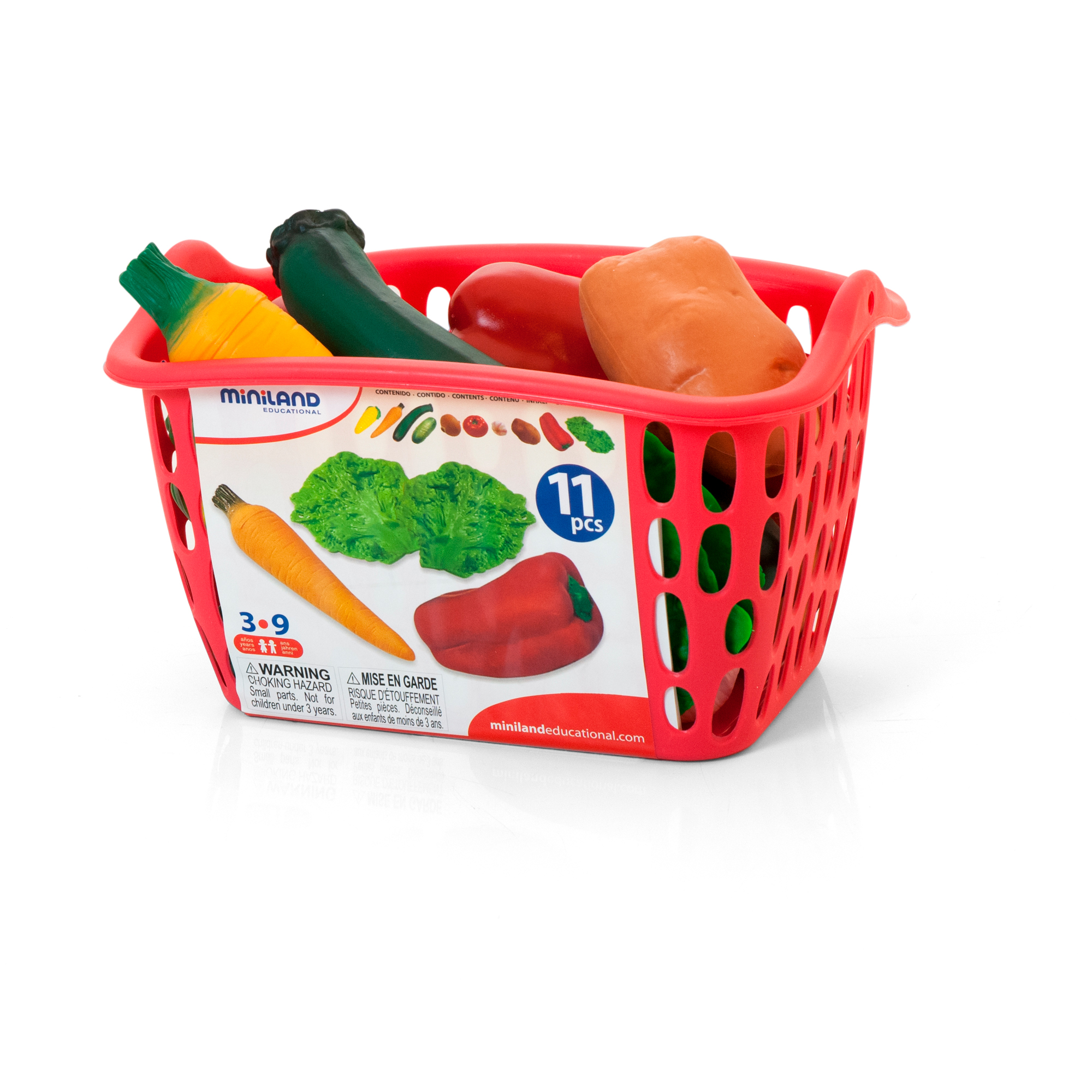 11 kusov zeleniny v reálnej veľkosti a v kvalitnom prevedení. Uskladnené v praktickom košíku na prenášanie dobrôt. Vhodné pre deti pri hre na obchod alebo do kuchynky!