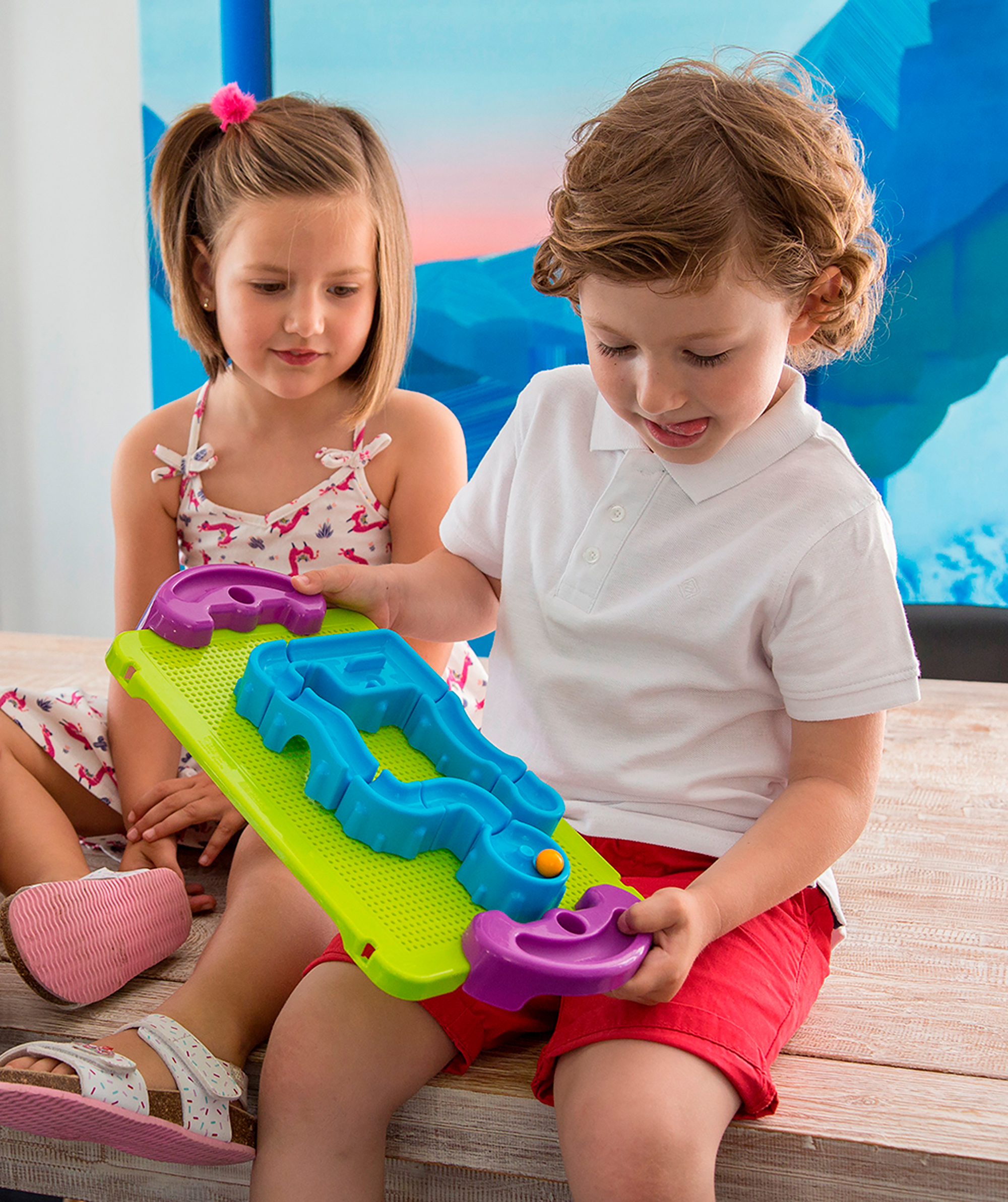 Bludisko je hra, pri ktorej je dôležité, aby ste zostavili na hracej ploche svoje vlastné bludisko, po ktorom sa budú loptičky pohybovať. V balení sa nachádza aj 6 predlôh na zostrojenie bludísk, takže o zábavu je na dlhú dobu postarané! Deti si tak vyskúšajú svoje zručnosti a schopnosti, či už pri stavaní bludiska, alebo pri samotnej hre, kde si precvičujú trpezlivosť a presnosť dostať guličky z bodu A do bodu B pomocou koordinácie rúk.. Na krajoch hracej plochy sa nachádzajú úchytky pre lepšiu a presnú manipuláciu.
