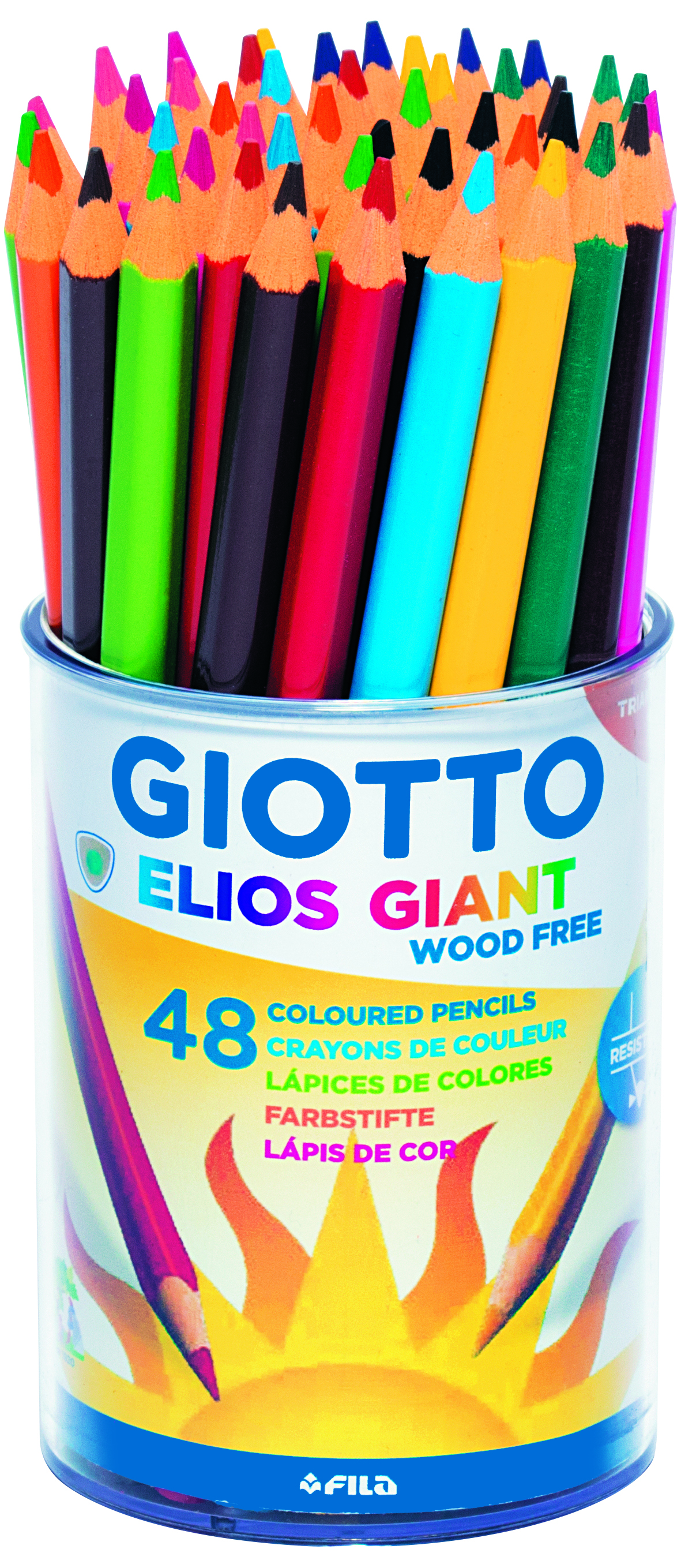 Trojhranné farbičky Giotto ELIOS s priemerom 10 mm s nelámavou tuhou pre všetkých malých umelcov.