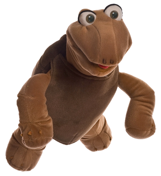 Milá maňuška korytnačky s pohyblivými ústami a hlavou na podporu detskej predstavivosti.