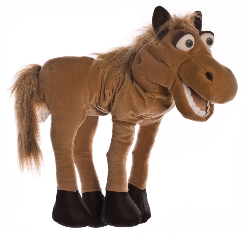 Roztomilá maňuška koníka s pohyblivými ústami a hlavou na rozvoj reči a predstavivosti dieťaťa.