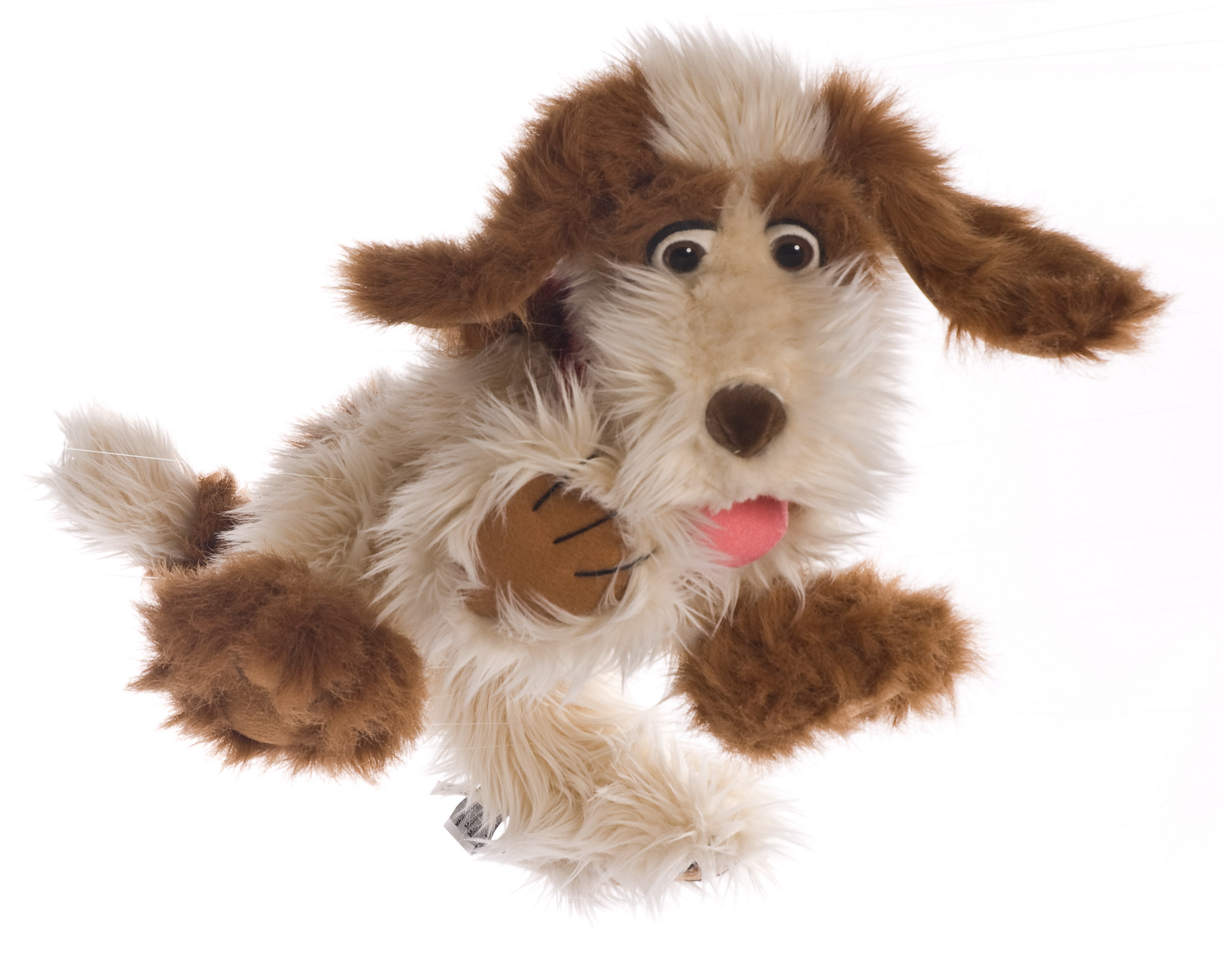 Hebká maňuška psíka s pohyblivými ústami a hlavou.
