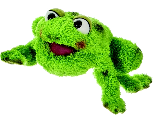 Roztomilá a hebká maňuška žabky s pohyblivými ústami.