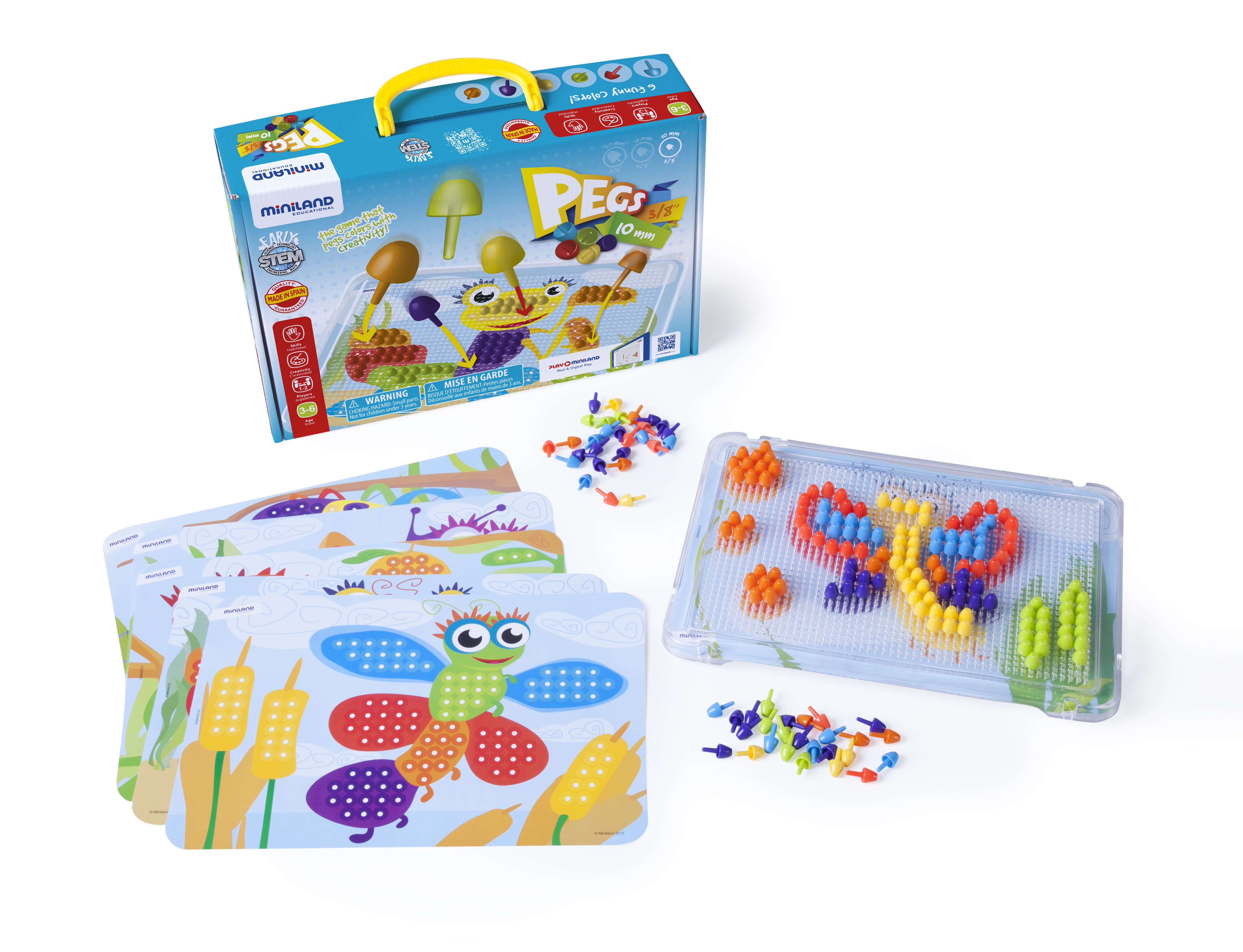 Mozaiková vzdelávacia hra založená na precvičovaní pozornosti a sústredenia dieťaťa. Zábavná hra plná farieb s farebnými kolíčkami menších rozmerov určená pre detičky od 3 rokov.