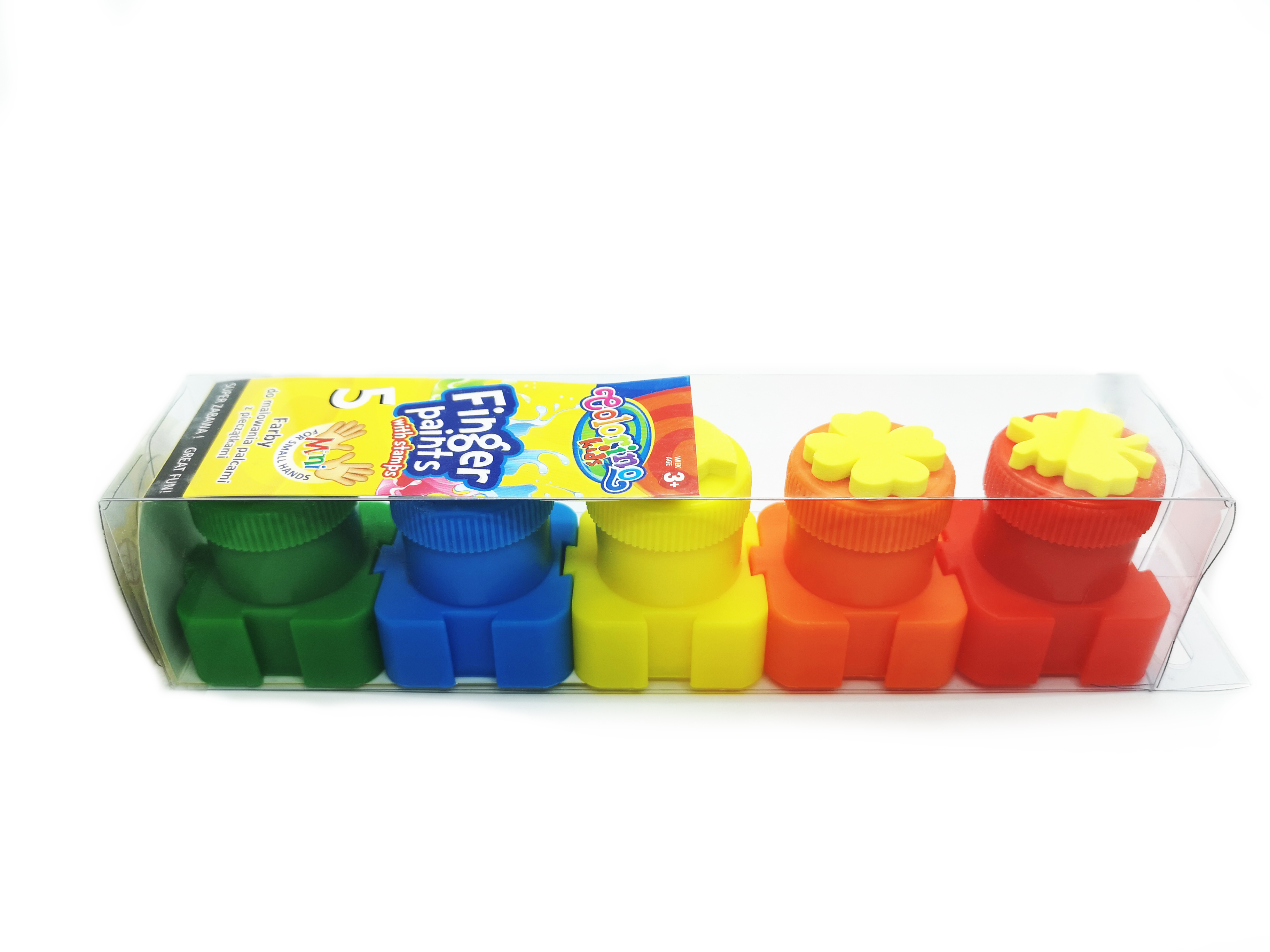 Oranžová, žltá, červená, zelená a modrá sú prstové farby, s ktorými dieťa zažije kopec zábavy. Či už na maľovanie na papier a sklo, ale takisto sú odporúčané ako vhodný doplnok ku Kreatívnej bubline a Magickému svetelnému stolu JonEly. Vrchnák tu má tiež svoje zastúpenie a to vo forme pečiatok, s ktorými deti rozšíria kreatívnu tvorbu.