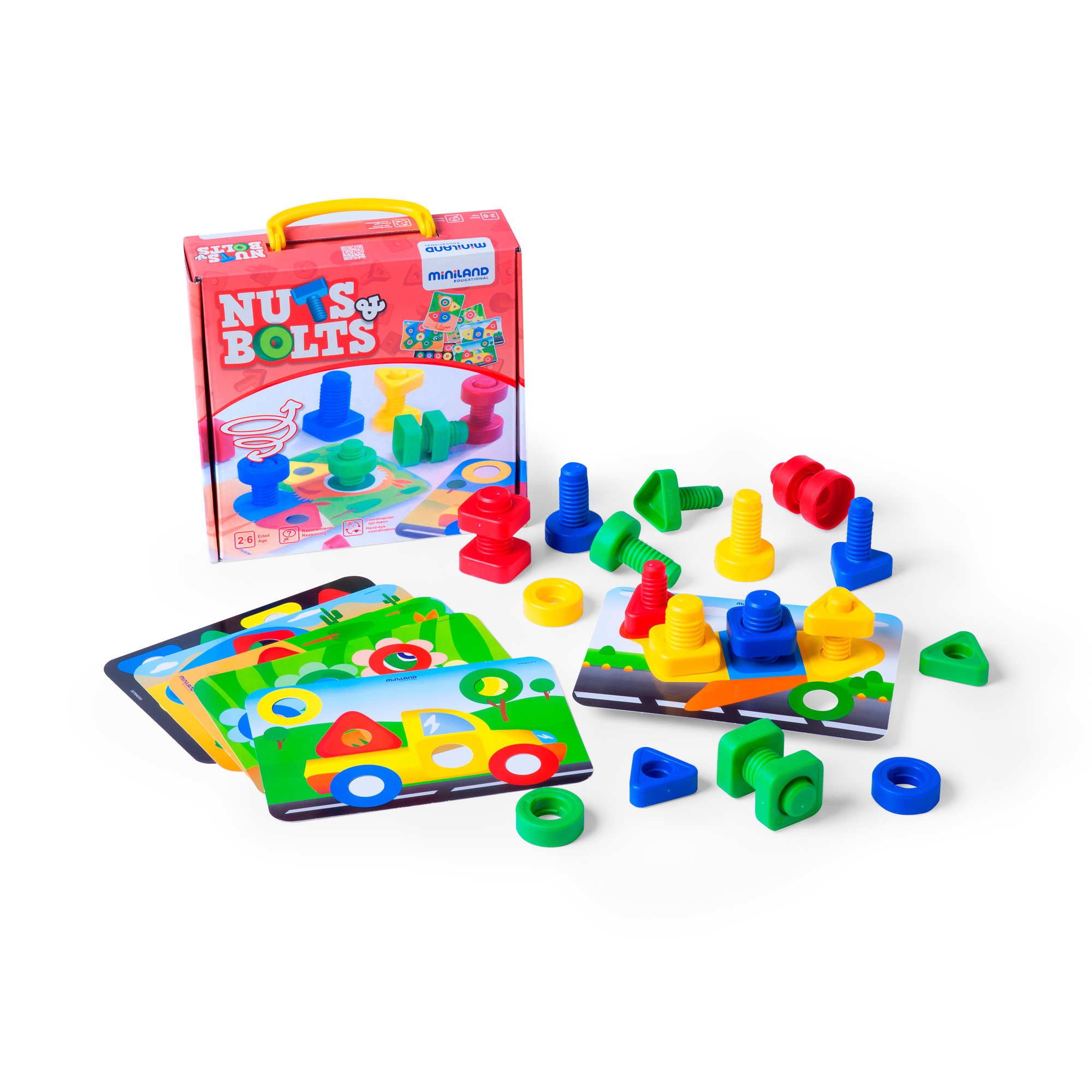 Hra vhodná aj pre menšie deti už od 18 mesiacov, ktorá je vynikajúcim nástrojom na precvičovanie jemnej motoriky a rozpoznávanie farieb a tvarov. Veľké matice a skrutky s 3 základnými geometrickými tvarmi: kruh, štvorec a trojuholník.