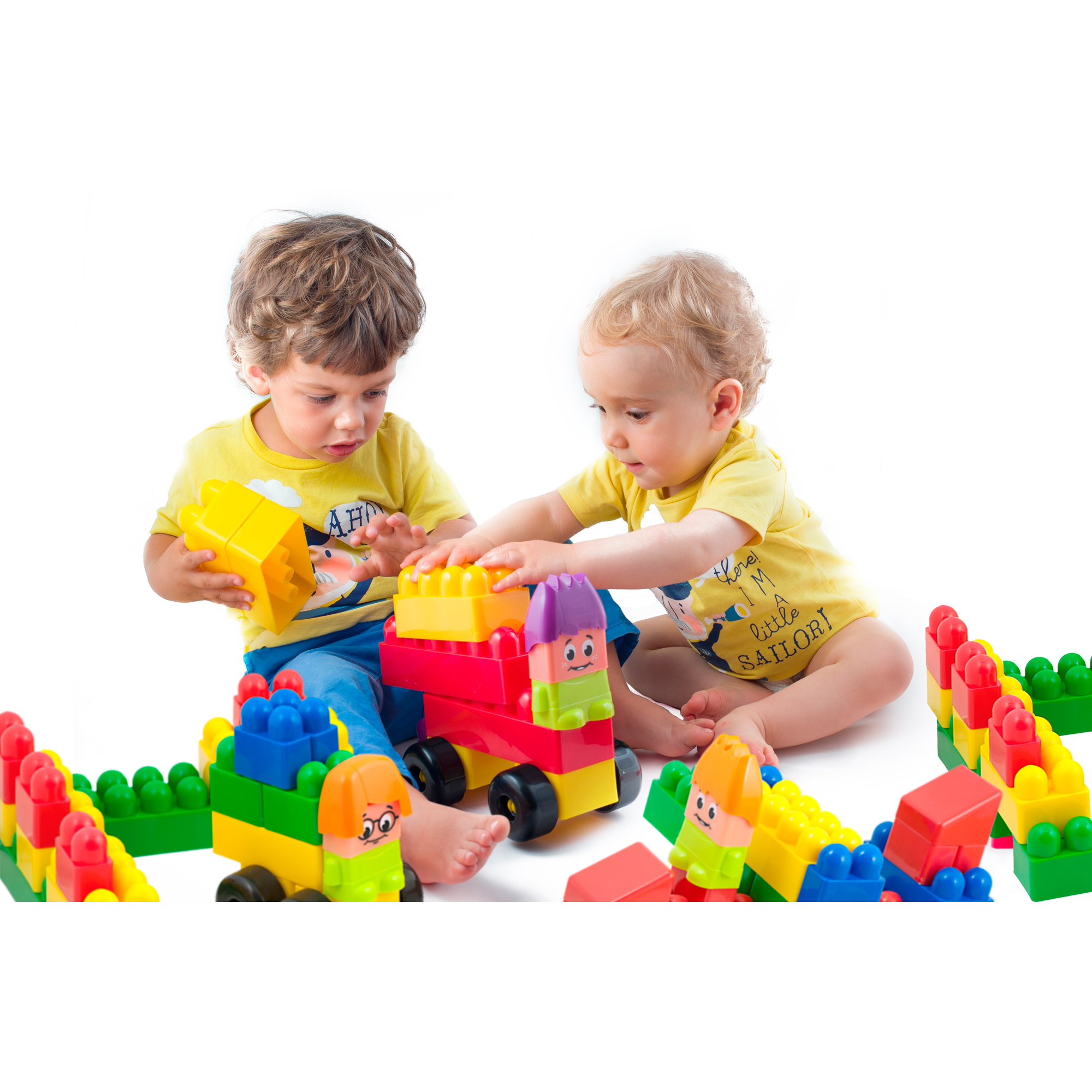 Obsahuje kolieska pre zostavovanie vozidiel a zábavné figúrky. V manuáli nájdete predlohy na zostavenie objektov, zvieratiek, budov... ale deti aj tak najlepšie vedia zapracovať fantáziou. Najväčšie diely dosahujú dĺžku 18 cm.
