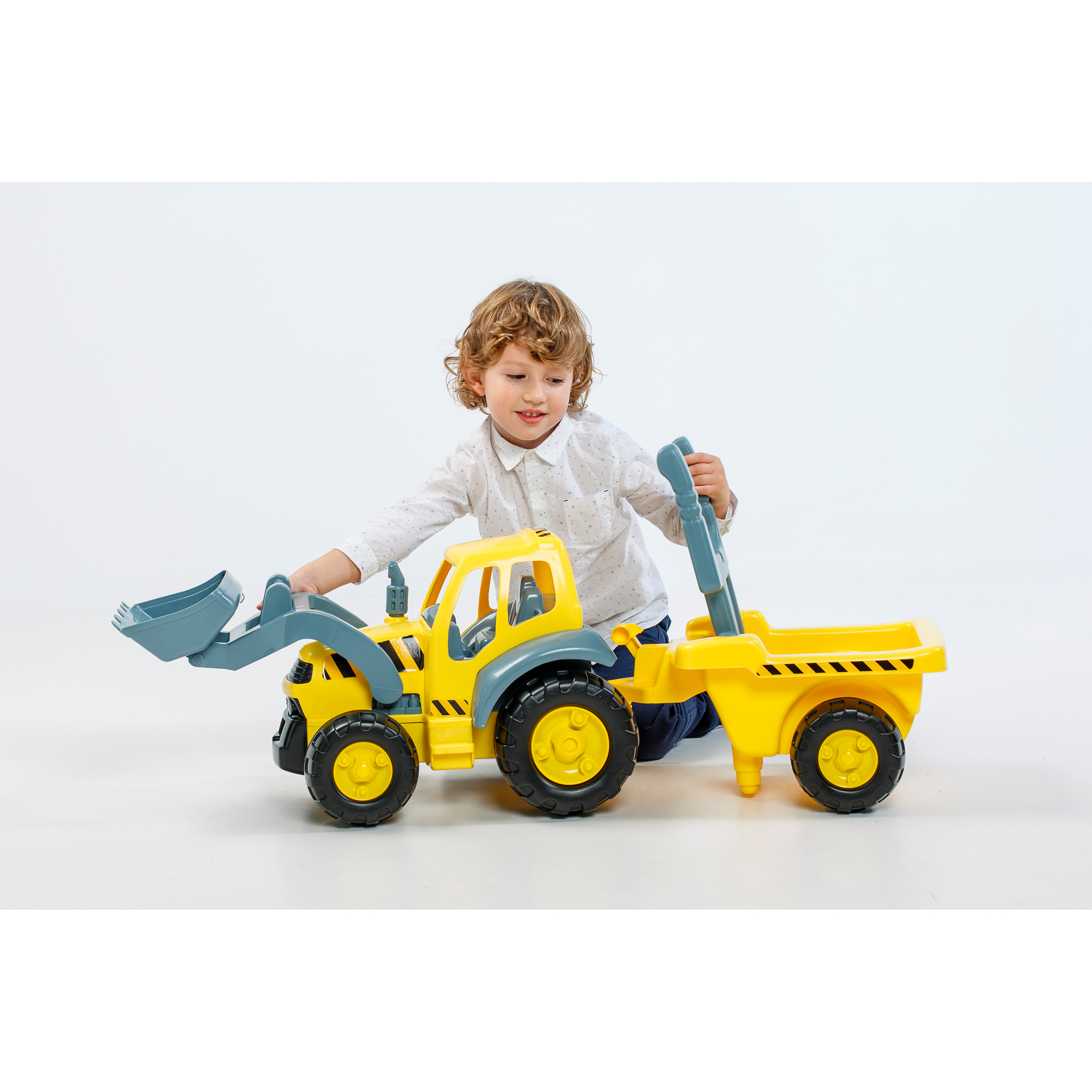 Pohyblivá lyžica s úchytkou na uchopenie a manipuláciu s lyžicou. Za traktor si dieťa môže pripojiť vlečku na odvoz ťažšieho materiálu! Vhodný na hranie v piesku a snehu.