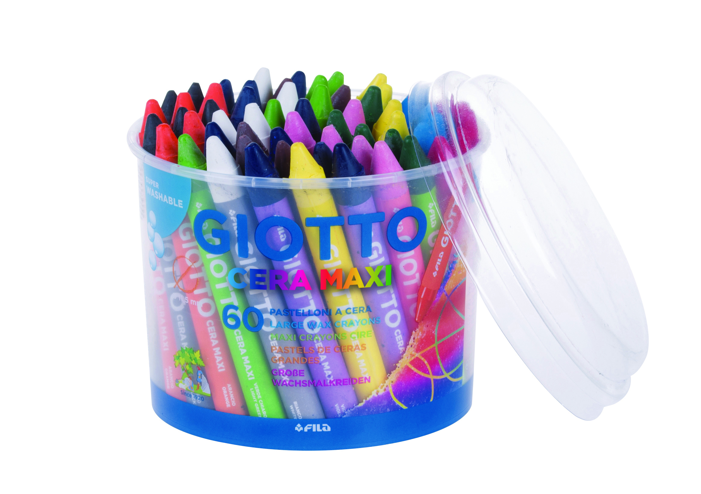 Veľké voskovky MAXI Giotto vyvinuté pre ľahké uchopenie s dĺžkou 100 mm a priemerom 11,5mm.